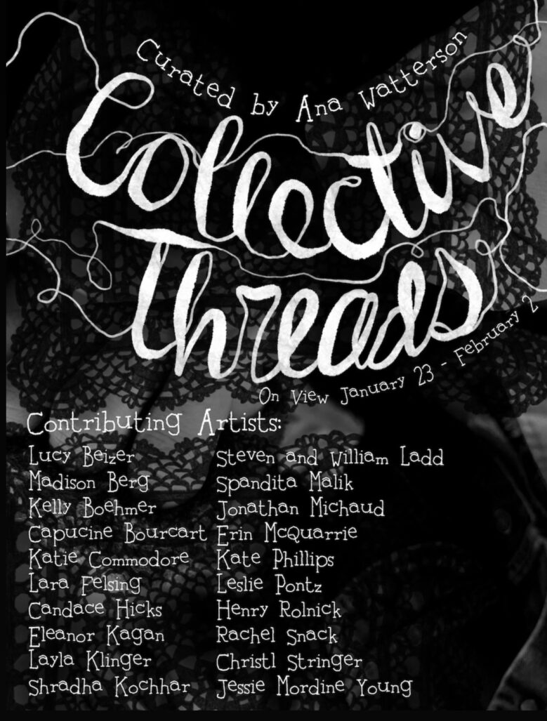 Inspired by the warmth, community, and creativity cultivated in these monthly meetings, the goal of this show is to explore a shared knowledge of fiber arts, as well as spotlight individual artistic practices. Each maker has their own unique story. Whether learned from or inspired by a mother, grandmother, friend or the internet the work connects and exchanges individual stories and traditions. The pathways of these threads and fibers tell the history of how knowledge is passed, how bonds are formed and pieces composed.